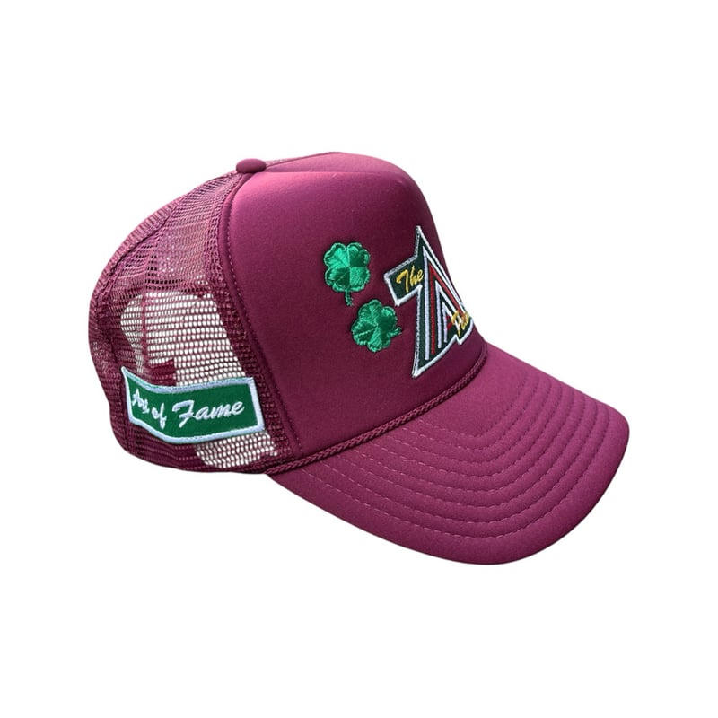 Art of Fame❌A-Team Burgundy Trucker Hat Hunter Green Logo/ Lucky Clover