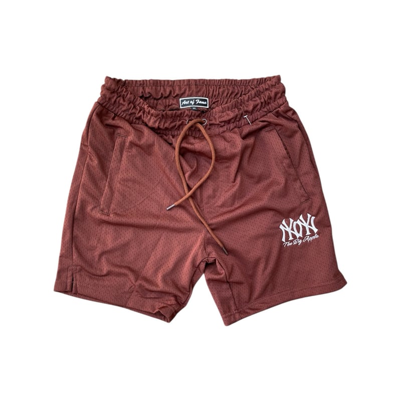 Art Of Fame/ Double NY Logo The Big Apple/ Chocolate Mesh Short/ Zipper Pockets