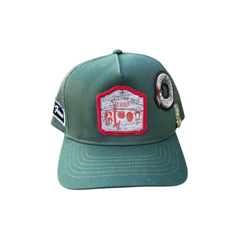 Art Of Fame/ K Frame 5 Panel Trucker Hat Hunter Green/ Camp Crystal Lake Double Patch/ With Pin