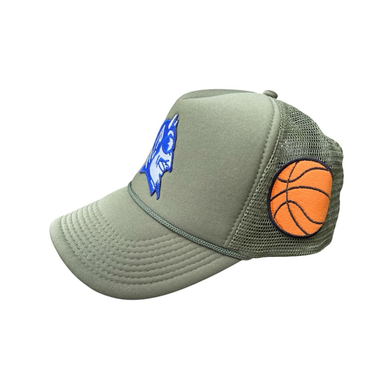 Art Of Fame/ Military Green Duke Blue Devils Trucker Hat/ With Felt Basketball Side Patch